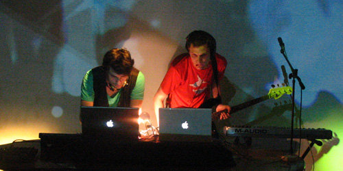 First of all, we decided to use as little preprogrammed material as possible since we didn’t like the idea of doing a ‘live dj set’. That led us to our current setup in Ableton Live which took us weeks to prepare. I have a midi keyboard and a midi foot controller connected to my laptop. I use the two inputs on my sound card to connect a mic and an electric bass. So basically what I do is get midi sync from Cristiano’s laptop and record material live and use the foot controller to create clips and then launch them. This system enables me on some songs to play bass, electric and acoustic piano and – on top of that – sing, which would otherwise be impossible.