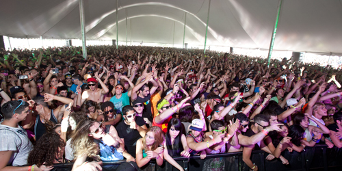 Crowd in the tent. Photography by Bennett Sell-Kline for ElectricZooFestival.com