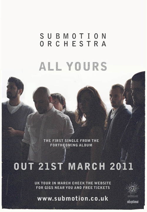 It’s been like a whole month since I’ve selected a new Track of the Week. I’ve been pretty busy, I guess… But it took a new single from Submotion Orchestra to wake me up from my hibernation. So today I share with you a preview of a single from an upcoming full length, due out on Exceptional Records on March 21st. Submotion Orchestra is an 8-piece project from Leeds, featuring the lovely voice of Ruby Wood and the rolling bass of Ruckspin. With a handful of classically trained musicians from hip-hop to jazz, this amazing group is sure to capture your attention. Picture The Cinematic Orchestra meets The Kilimanjaro Darkjazz Ensemble meets your favorite elements of dubstep, and you’ve got a cocktail of perfection that will surely excite all of your neurons!