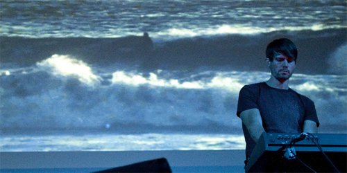 I woke up from my nap with a call from Rafael Anton Irisarri. I was due to interview Simon Scott before his show later in the day, and walked down to the lobby to meet the crew. There I grabbed a few drinks with Brendon Anderegg and Koen Holtkamp of Mountains, Simon Scott and RAI, before it was time to head out to the first Optical showcase, subtitled “Sine Your Name Across My Heart“. At the Nordstrom Recital Hall, I grabbed the front seat and melted away into the harmonic frequencies of Mountains’ sound. The duo built up waves of aural walls, that covered the audience with a fuzzy blanket of sonic textures. The projections included Koen’s recorded videos, slightly manipulated to create hypnotic washes of visual stimulation. The hour long performance seemed to go by in minutes, as I entered a dream/wake state of meditative relaxation. Be sure to check out Mountains latest album, Air Museum, released by Thrill Jockey this year.
