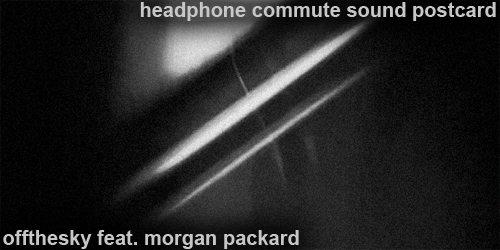 ![]() In an unprecedented move, we receive a special sound postcard featuring not one, but two of our favorite musicians working together – offthesky and Morgan Packard. To be even more unconventional, Jason Corder submitted a video created exclusively for Headphone Commute‘s Sound Postcard series. Listen to this Sound Postcard… |