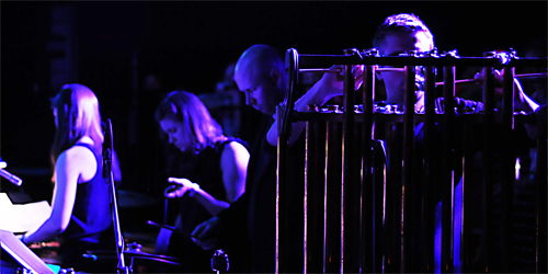 Electronic static, radio frequencies and bits of [intended] conversations echoed over the music, occasionally colliding with camera shutters, clanking utensils and bits of [unintended] waitress’ last calls. The most poignant samples came from the recordings of interviews with the survivors of the disaster. Music flowed from every corner of the venue, mixing in with a wide range of industrial sounding objects, attempting to replicate the sounds of bent, scraped, and twisted metal. A bass clarinet woke up from its solemn meditation and cried out in angst as the ethereal choral voices faded away. I even watched a percussionist drip water into a metallic bowl in front of a microphone. I wondered what that particular direction looked like on sheet music.