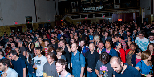 Friday night could not come soon enough. It’s been a long week, and after a few late nights I was in dire need of a drink. Thankfully, Le Poisson Rouge was the next venue to host Unsound and furnish a seat with table service. The show started off with Mark McGuire of the Inner Tube project (Spencer Clark could not make it out). Cleveland based McGuire used his guitar to control layered drones, synth driven pads and light percussion to induce a dreamlike melancholia that slowly mixed and drifted with my drink. By the time Stefan Betke began his live performance as Pole, I was properly medicated, lubricated and subdued. Betke’s hypnotic dub beats with pulsating bass and delayed minor chords reminded me of why I love this Berlin based artist, along with his trilogy of 1, 2, and 3, albums, and the 2001 followup, R, on his very own ~scape label. The crowed seemed to agree, as it slowly moved with the hazy minimal basslines and rhythm of the beat.