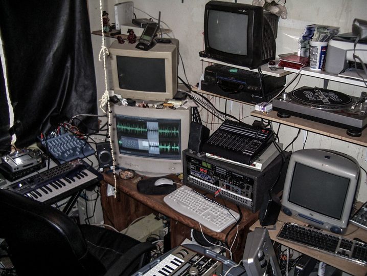 I started with playing guitar and various keyboards. I suppose it depends what you define as “gear” these days. As a kid, I had a Casio SK-1 and a bigger Casio keyboard that isn’t notable enough to remember much about. I had a couple of pedals for the guitar. My first programmable piece of equipment would be the Boss DR-660 which I got as a Xmas gift in 1993 or so. A year later I somehow managed to shoplift a Roland MS-1 and talked a friend into indefinitely letting me borrow his family’s Karaoke machine. So between the drum machine, sampler, guitar, I could swap tapes back and forth and layer tracks. It was probably the most ghetto studio ever.