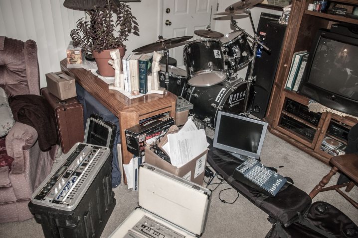 That setup mentioned above grew and grew, eventually spiraling into chaos. In 2005 or so, I had temporarily taken over payments on my mother’s tiny duplex house. It was kind of like an invasive plant just growing around a different one. For years I slept on the floor with my head in a kick drum (the pillow inside helped the thump when playing). There was old Roland gear wired up around pictures of Jesus Christ and doilies preventing rack gear from scratching decorative tables. In the yard I had made giant wind harps and chimes that sounded like tubular church bells. My neighbors rejoiced in 2007 when I moved to a 2 story condo in Wicker Park. The studio in Wicker Park was a polar opposite. I had a recording room, a mixing room, and a vocal booth/guitar room. Everything was organized, clean, and proper. I realized that my output actually slowed down from it. I was used to working in chaos, and really just felt uncomfortable the entire time I was there. So I moved to Bridgeport, and my studio here is as chaotic as the neighborhood is. For 6 months I experimented with having a studio in a spot down the block, but I’m too attached to making music to put it at the same level as “going into work”. So all my gear came back here. I’m moving again at the end of the year, hopefully to find a good balance between organization and what I have now. But more importantly, a more peaceful and secluded environment that is closer to nature.