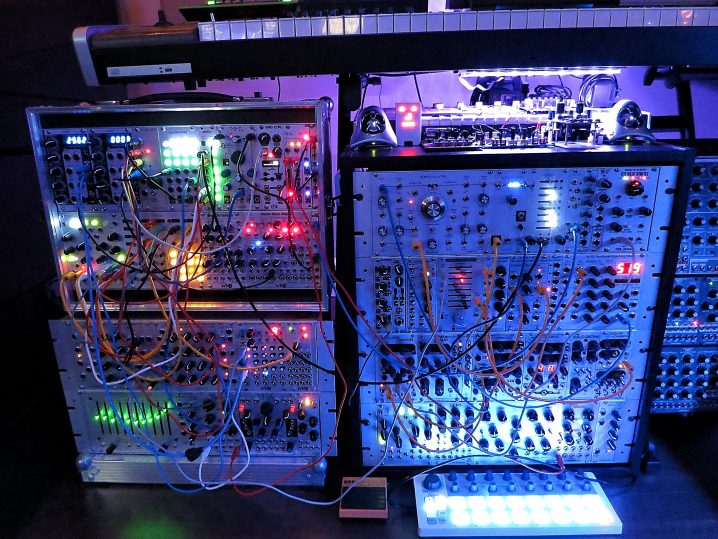 Well recently I have been using an Enclave 12U modular case as I have moved over to doing complete solo modular performances. I also bring out a few guitar pedals, which include a Strymon BigSky, Eventide Space, Red Panda Particle, and M.A.S.F granular pedal called “Possessed”. I have purposely not wanted to bring out the computer as I wanted to explore what all could be done with the latest set of eurorack modules.
