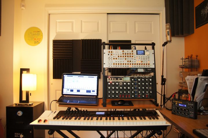 A lot. In the first few years, it started out as mostly hardware. A drum machine, work station, analog synth, effects unit, sampler. Then I got a computer in the mid 90’s and my first laptop around 2000. I didn’t even get proper monitor speakers until about 2001.