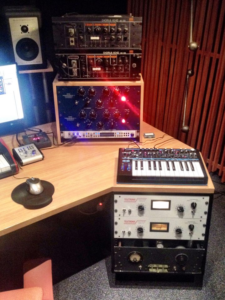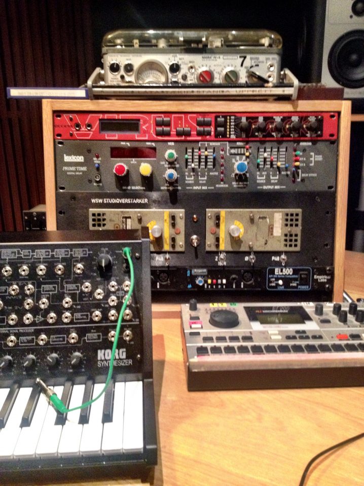 Janus: My studio is mostly based around a lot of analog synths and drum machines. I record a lot of vocals, so the lovely U47 clone made by my friend is always in use.