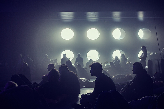 Thankfully back upstairs (stairs again) Emptyset were laying down solid cadence. Not exactly drone-like for the second part of the “dronefest”, but nevertheless a welcome stomp-out of their clear-cut hard-line beats. No wonder that Raster-Noton has picked up the duo of James Ginzburg and Paul Purgas from their Subtext dwelling for Recur. A surprisingly gratifying performance. Yet another floor higher, at a venue appropriately titled Cloud 9, Chicago based Hieroglyphic Being began his electro-housy set of techno loops and noise. At this point I checked the clock, and with 4:00 am glaring in the darkness I decided to call it a night. And although a puddle of pillows at the dronefest sounded like an enticing experience, I chose a bed and pillow for my sleep.