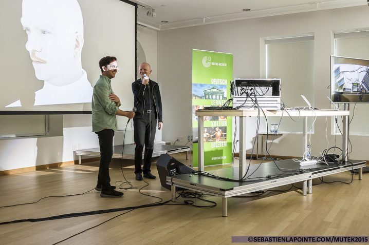 On Friday I began my MUTEK experience with a few daytime activities, presented in the nearby Centre Phi. Kicking off with Resident Advisor’s Machine Love Live, I spent an hour in the company of Uwe Schmidt, who, only a night before, performed alongside Robin Fox as Atom™. In this interview with Jordan Rothlein, Schmidt shared his approach and a few anecdotes on finicky setup of live performances, configuring his MPC clock to drive the sync between the A/V, as well as the act of teaching himself to create visuals from scratch. It was indeed his overall obsessive nature, and the distraction of video that was never connected to the audio, that drove Schmidt to create his very own projections.
