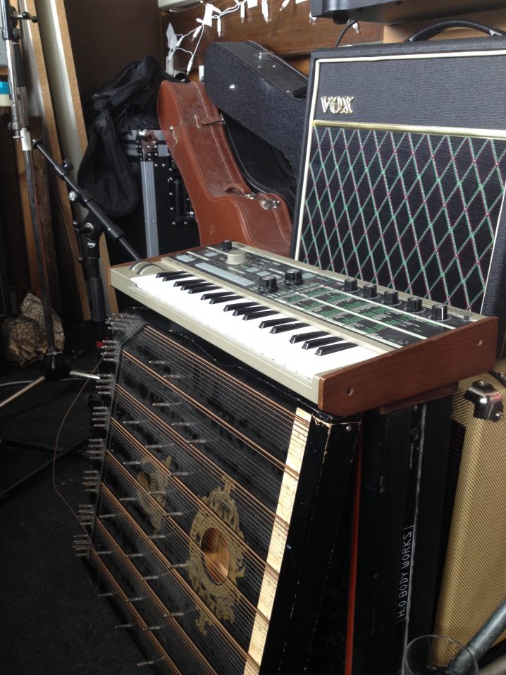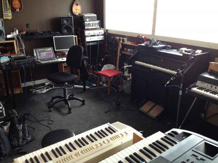 I would say the access to a lot of different instruments. We have a pump organ, a fender Rhodes, a piano, accordion, banjo, violin, mandolin, lap-steel, acoustic and electric guitars, electric basses, amps, loads of effect pedals, various synths and organs, zither, drums and so on. There are plenty of stuff to play around with. But what I really would like to improve are the acoustics for listening, because honestly what we got now is very far from optimal. Finding the sweet spot is very hard and I have to constantly reference listen in headphones and at home to know where I’m going with a mix. What I would like to do is just get someone in to help me out with it, but that costs a lot of money so at some point I will have to deal with it myself and just fucking do it. But I keep procrastinating unfortunately…