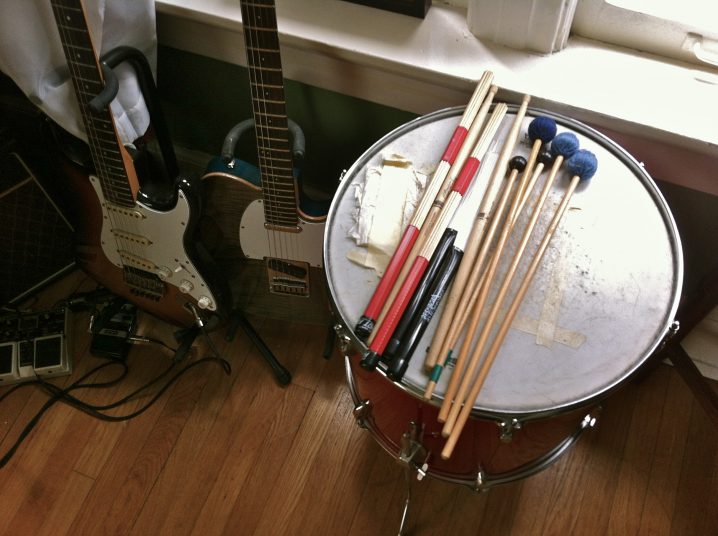 Technically it would have been the piano – I was started on lessons around the age of 5 and sometime after that I realized that anything sounds good if you play it all on black keys… So my first original ‘compositions’ were in that mode… Black keys and sustain pedal. We sold our piano when I was a teenager, because by then I was more focused on drums and guitar, but over the past several years I’ve wished to have a piano at home, which is problematic when you’re an apartment dweller…
