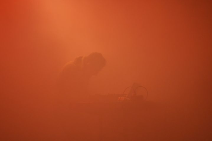 He was front and center before thousands on Wednesday night, not that you could confirm that was the case though. Not since the ritual magic and doom metal masquerade of Stephen O’Malley’s SUNN O))) has anyone thought to pour that much smoke into a venue for cinematic effect. Thrumming out through the impenetrable murk, Jaar pumped his mix of accentuated LP surface noise and time-stretched vocal samples around which he built his slowly evolving grooves. His DJ set shared the same long arcs of escalation as his ruminative, lower BPM “blue wave” techno. Somewhere back there in the fog of smoke, distorted sound and muffled beats was the lone operator at his controls.
