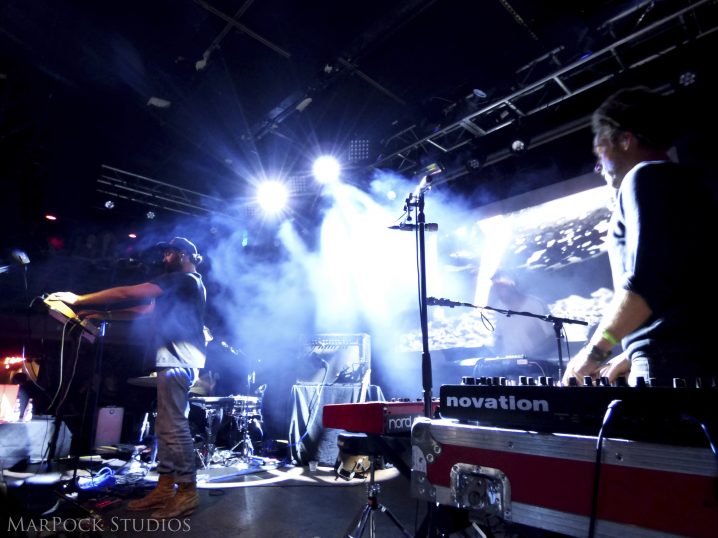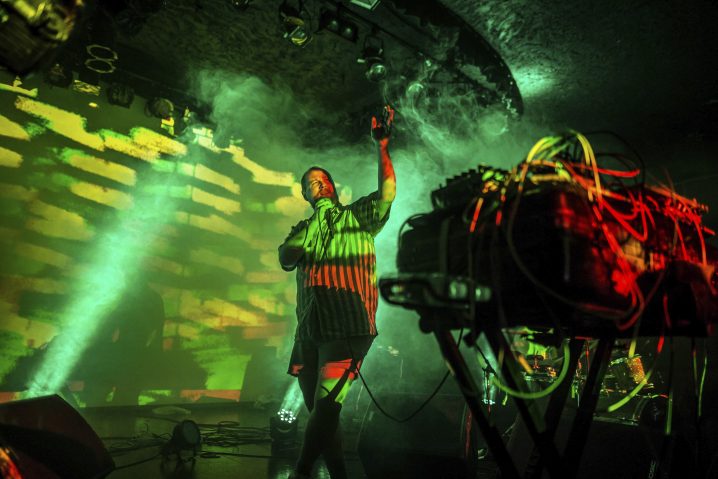 Decibel itself often presents an interesting conundrum; how to navigate being in multiple locations simultaneously. Outside of experimentation at the fringe of theoretical physics, there aren’t many examples of this being done successfully. So Ghostly’s Lusine and the Domino label’s Bob Moses were wholly missed along with 3/4 of the Liminality showcase, even with having made a science of the 2 mile distance between venues. The 20 minute traversing of the city’s scape got us in the door at Neumos in time to witness the most recent iteration Adam Freeland‘s decades spanning, remix-studded career. The most recent of his reinventions of self, The Acid finds him in the company of composer and videographer Steve Nalepa and Australian songwriter Ry Cuming as a electronically charged band proper. Helpful points of reference are LCD Soundsystem‘s live setup or late New Order, this is a definition of “band” characterized as much by the interplay of musicianship, live percussion and lyrical passages as it is black boxes and studio trickery. It’s elementary that their synthesis of extended stretches of groove oriented electronic journeying, swelling electric instrumentation and souring vocal verses would find a home on Daniel Miller’s legendary Mute Records. Decades of individual experience have honed Freeland, Cuming and Nalepa into a a three-force body with the strength of traditional musicianship on which to build boundary pushing forays that serve a songwriting nucleus. On stage the confidence and collective assurance of their sound left one with the head-nodding assurance of thoroughly modern band in their prime. By the conclusion of their melodic, groove propelled set the room had attained elevations on a different plateau from the night’s visceral irruptions, dissonance and gloriously spastic nimiety.