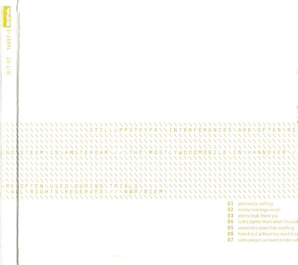 Everyone knows Mille Plateaux. I don’t know many other musicians interested in experimental music that weren’t influenced by something in their catalogue. Lesser known (it seems to me) is the sublabel of Mille Plateaux, Ritornell. All except 5 of their 32 releases came out between 1999 and 2001, and almost all of those were packaged in this very clean, white, reverse-board, triple-foldout all-board package with a traditional text-only design – changing only the text colour and information (for the majority of the releases) from release to release. To someone who appreciates CD packaging and concept, it’s a beautiful thing.
