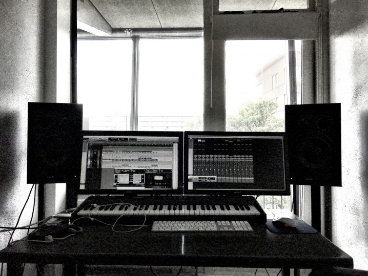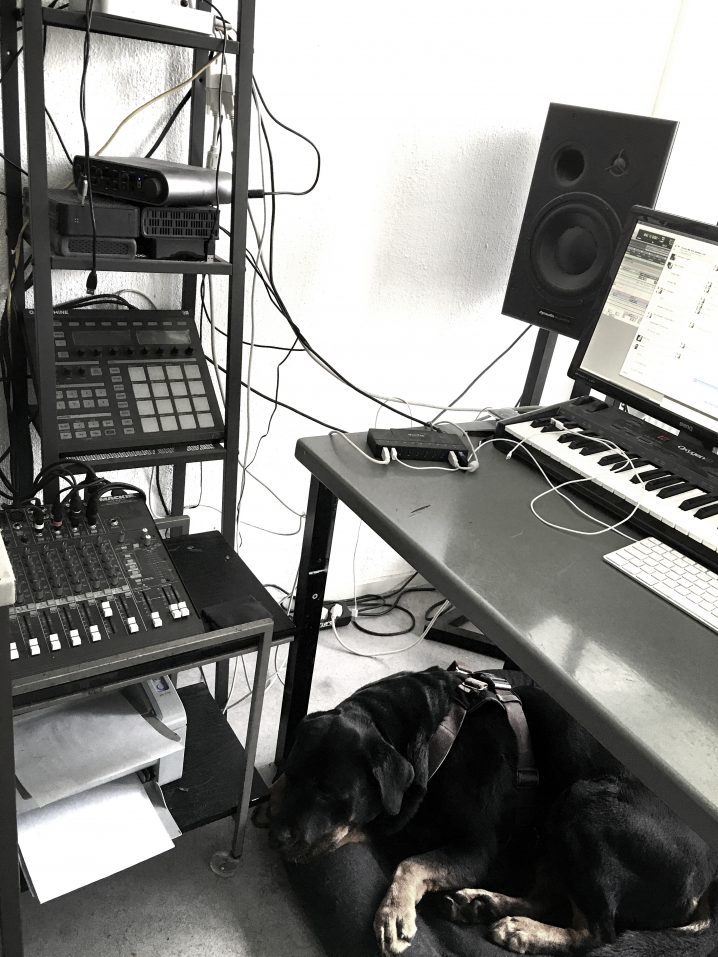 Not that many, the heart of the studio are my monitors, and everything is always built around those. The monitors are big and they need the length of the room for the bass to be a bit steady. I have 2 desks: one with my computer monitors in it and the speakers besides it, and another desk with my laptop and a couple of hardware controllers.