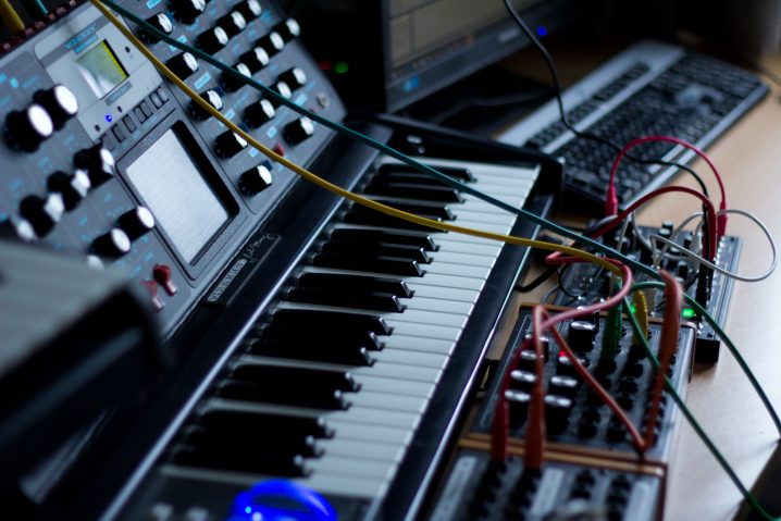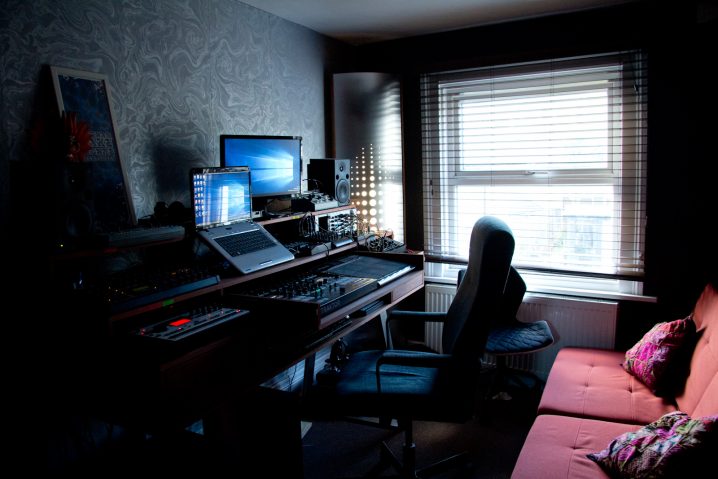 DOM: I cannot choose one! My modular corner is a beast, it’s a holy trinity of Moog Mother, 0-Coast, and a Doepfer rack. The Machine Drum for hi-hats is sublime when applying random square LFO to the decay (so funky). Mono Moisturizer spring reverb to add warm but dirty verb dynamics. And finally my desk, recently custom built with 3 levels of sliding desk surfaces for different parts of the music lifecycle. Bottom: keyboard mouse and midi controller for programming, Middle: piano keyboard for notation / performance and Top: Traktor S5 and drum pads for live performance / rehearsal.