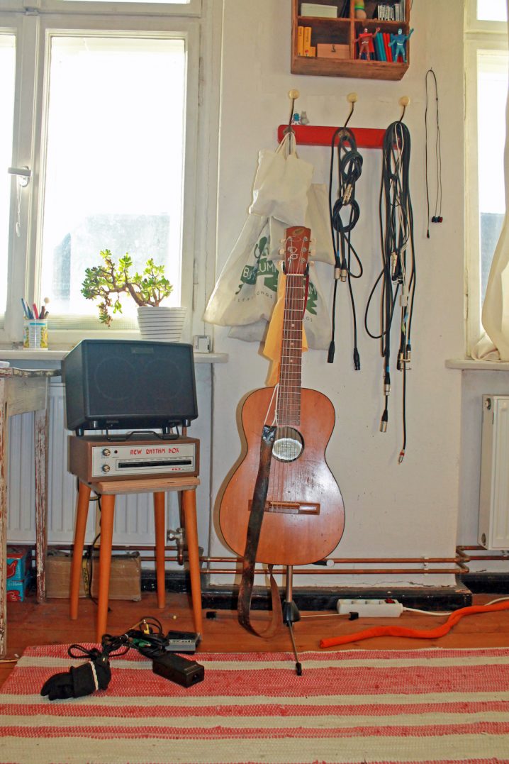 I have an older brother. When I was around 10 years old we were into Hard-Rock and Jeans. So I wanted to play the guitar. I learned playing the electric-guitar by playing along to “Iggy and the Stooges”, but I also learned classical guitar at the same time. Actually I still enjoy switching between different worlds, for example, at the moment I enjoy listening to dub and punk. Anyway, my composing process usually starts with playing the guitar. First gear? I had a stereo cassette-player (SABA) with a built-in speaker when I was a kid. I recorded my voice with it, playing hit-parade…