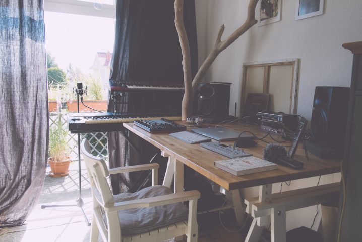 I moved places quite often in the last years so I had quite a different workspace every year. I never had a separate studio, it has always been a part of my flat. At the moment the room is a bit smaller again. Before that, I had a studio that I also used as a painting atelier. Now it’s for music only and focused on functionality by just having set up what I really use.
