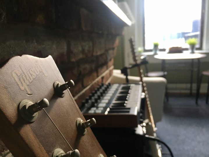 ANDREW: I have gone through a constant change in my setup, mostly as a byproduct of frequent relocation. Since those first days of experimentation in college, I have moved a total of 7 times over the last 9 years, and have never allowed myself to accumulate much gear…in fact, it is almost embarrassing for me to show my humble little collection to the world. It’s not at all a “professional” arrangement. But the core of my setup remains to this day simply a MacBook Pro, Logic and countless plugins (I return most often to the Soundtoys suite), a Focusrite 2i2 interface, an Arturia Analog Lab MIDI keyboard, and a MicroKorg synth that has found its way into virtually every track we’ve ever written as Hotel Neon. There has been a legion of guitars and basses as well, frequently traded, swapped, and sold.