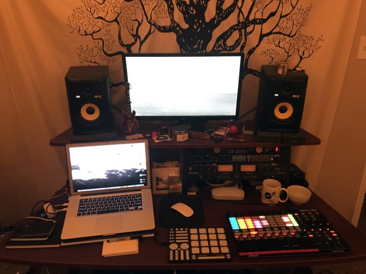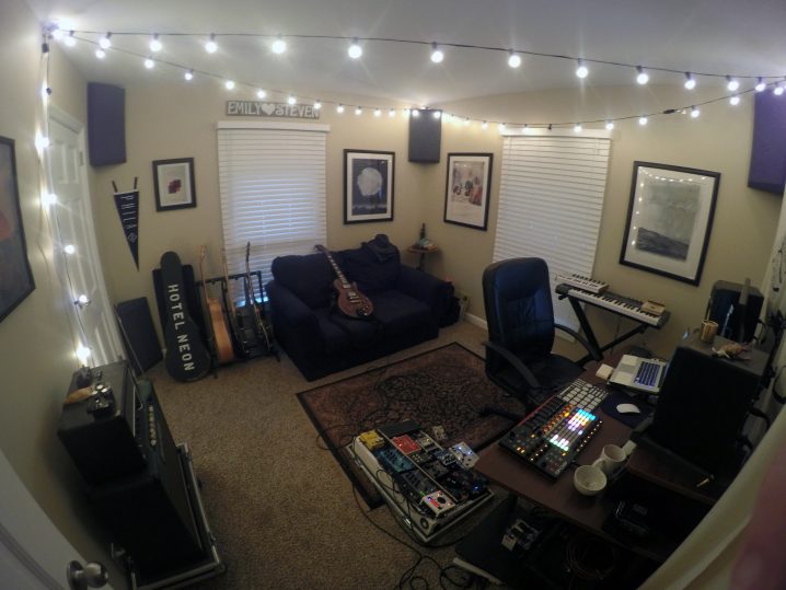 STEVEN: Comfort is the most important environmental aspect to me. Not necessarily physical but mental comfort. Having a space where most of my stuff is setup and ready to go when an idea strikes is also important. Nothing kills an idea faster for me than having one then needing to setup equipment to try it, I like it all ready to go. Eventually I’d like to improve on sound-proofing and implement a “live room” of some sort but for now, my little bedroom space will have to do.