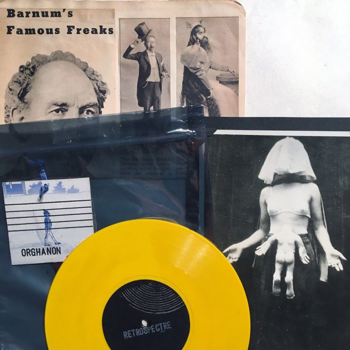 As usual, with Time Released Sound, the release is carefully curated and packaged in a handmade delivery vehicle in a form of a modified anti-static bag strung with a 100-year-old children’s game tag. Along in this parcel is a “uniquely mysterious” and “spooky” antique 5″, 78 rpm record (a completely separate recording), a vintage 1940s photo of a “freak” from an old album of “freak show” ephemera, and, of course, the actual CD. I also managed to notice, that for this release the label has employed the mastering services of Taylor Deupree. That may not mean much to you (I hope it does, my dear reader), but to me, it spells a particular aesthetic of organic ambiance, sparse electroacoustic treatments, and delicate minimalism that only Deupree strives to achieve. And that’s what this album reveals.