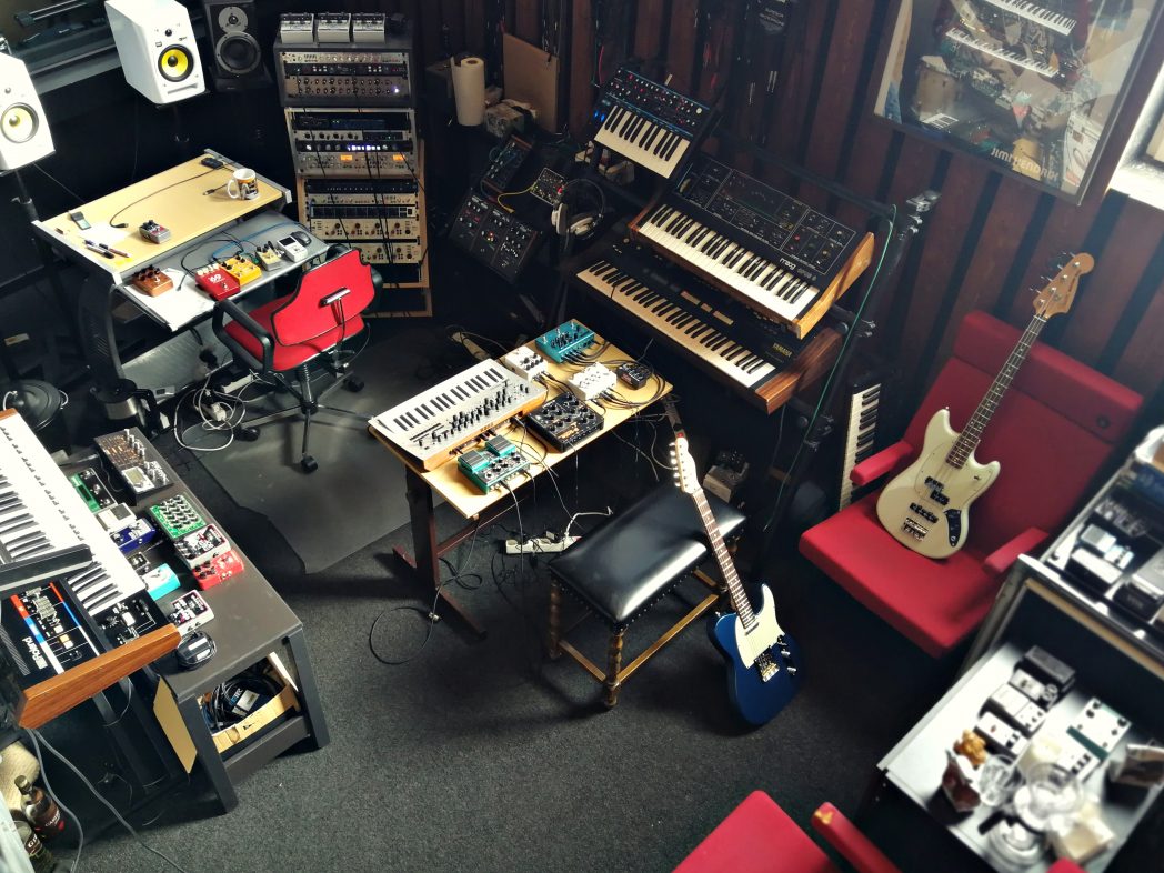 First of all, just having everything in the same space is a huge advance over every previous studio I’ve worked in. All my gear is fully functional and within reach – it’s pretty organized compared to my previous setups! Having a place away from home helps to focus, and keeps distractions away. Besides, I can make as much noise as I want down here.