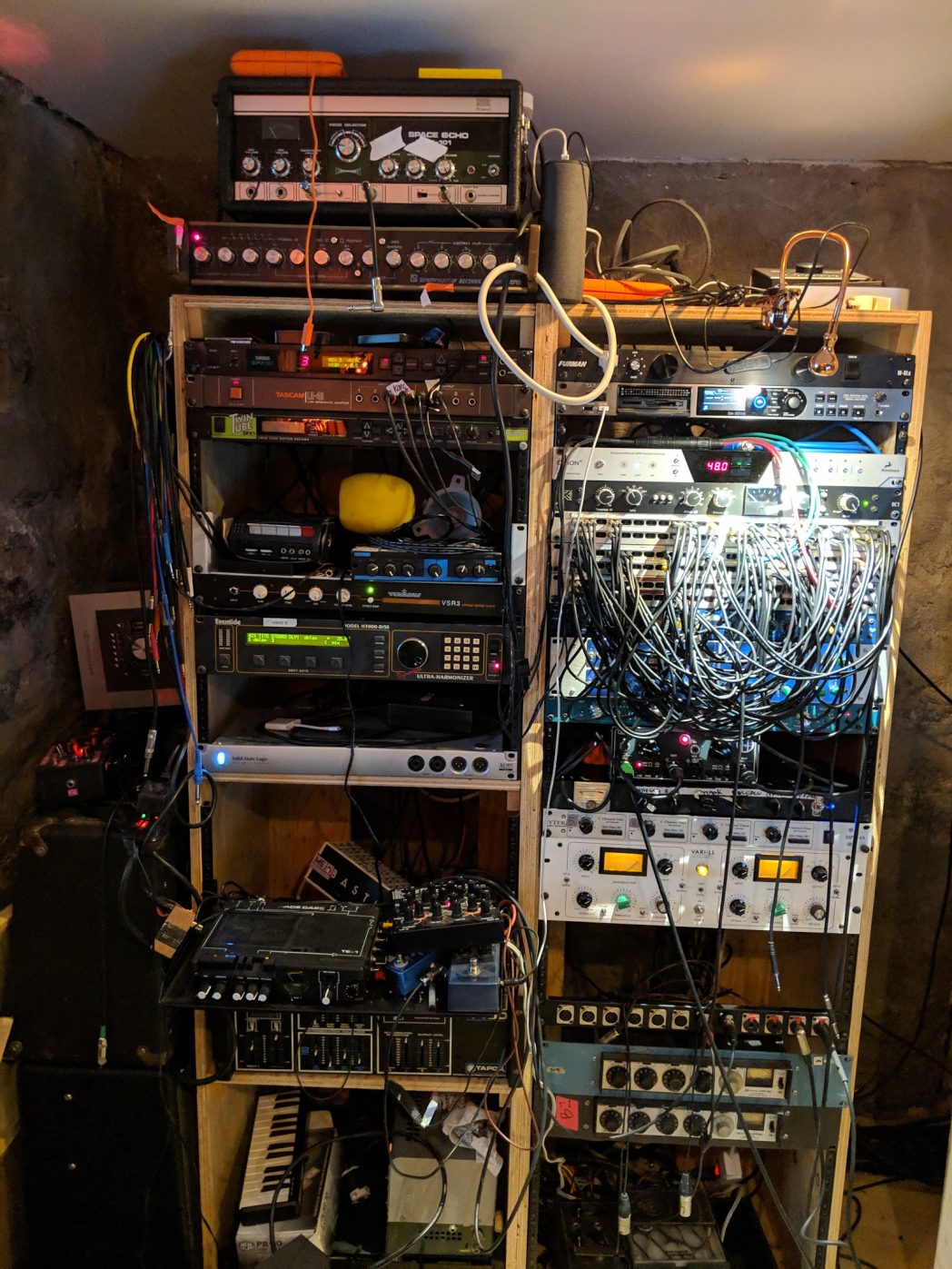 In recent years I’ve rented a beautiful space which was a classroom in an old school. I was sharing it with a piano teacher who had a nice grand piano. This space had big windows and lots of plants. It was more of a safe/work creative place than an actual recording studio. My friend and Montreal pianist, Jean-Michel Blais, was also using the space for rehearsing. Unfortunately, I had to leave the space last January and now I’m back to my home studio! But for a long time, I’ve had my workspace in my bedroom. My first “studio setup” was the traditional soundcard/monitors/88 notes MIDI keyboard and I would set up all my guitar pedals in a chain and use them as rack effects. But at the end of the day, I would mostly use in-the-box effects for writing music and used the pedals for guitar only… until I came across the…..