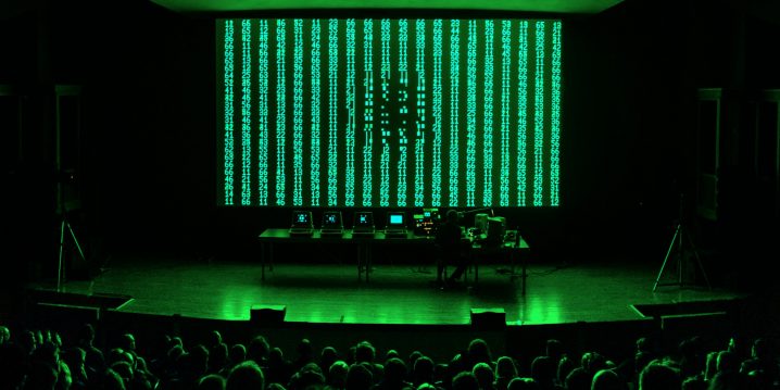 This is not the first time I have witnessed Robert Henke live. I’ve experienced his immersive audio-visual performances in Seattle [at Decibel Festival], was zonked out of my mind with his laser show in Montreal [look up multiple chapters of Lumière], and now was treated to his unique demonstration of antiquated technology using computers from 1980 at the Barbican in London. Whether this type of graphic and sound generation was even possible [or pallatable] in the 80s is almost irrelevant – what Henke was able to do with the five restored Commodore machines is merely incomprehensible. Although the CPU was running at 1MHz, the 256 possible PetASCII characters flickered around the screen at an impossible rate [even the projector couldn’t entirely keep up] creating patterns and visuals which could only be appreciated by the modern mind. Perfectly synced with the generated post-techno sounds [Henke retrofitted these ancients with an updated DAC and fed the output through a rack of early 80s audio effect processors], the show was a mesmerizing marriage of technology from the past, which could only come from the mind of this pure genius. “This work is about the ambivalence between a contemporary aesthetic and the usage of obsolete and limited technology from 40 years ago. Everything presented within the project could have been done already in the 80s, but it needed the cultural backdrop of today to come up with the artistic ideas driving it.” See complete details of the show [including a detailed technical breakdown of the video and sound generation] on Henke’s current list of concerts, and if you can, be sure to catch this beast in action! Highly recommended!