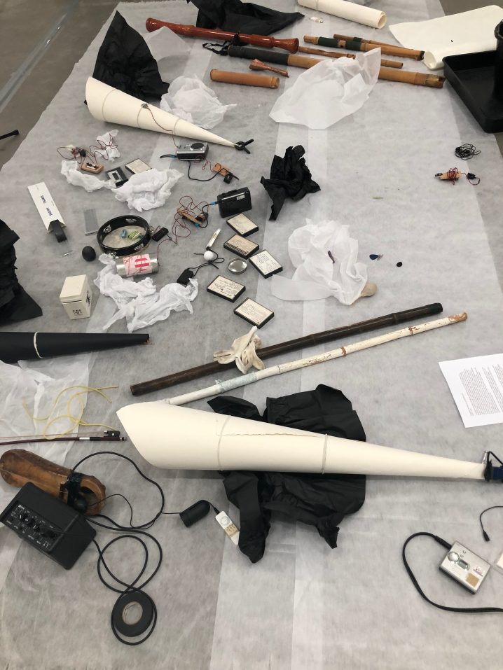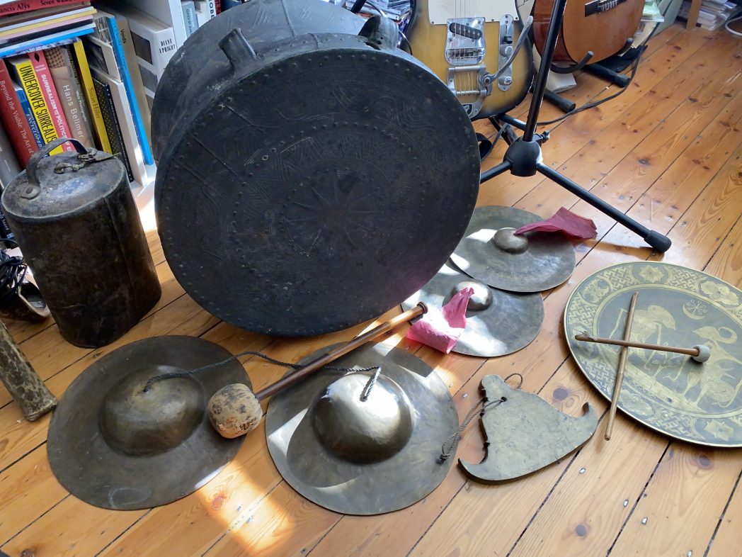 To me, the most important element of my process is my collection of instruments and sound makers that I use, of which there are hundreds ranging from toys to vintage guitar pedals, bird calls, stones and home-made flutes, antique Asian percussion, guitars, bass guitar, lap steel and pedal steel guitars, bass recorder, vibration motors, bone conduction and vibration speakers, paper amplifiers and a big collection of field recordings. In that sense, the studio is dispersed throughout the entire space in which I live and it allows me to continually generate new sounds with which to work. What I use changes all the time as my ideas change, although there are certain things I’ve been using for fifty years.