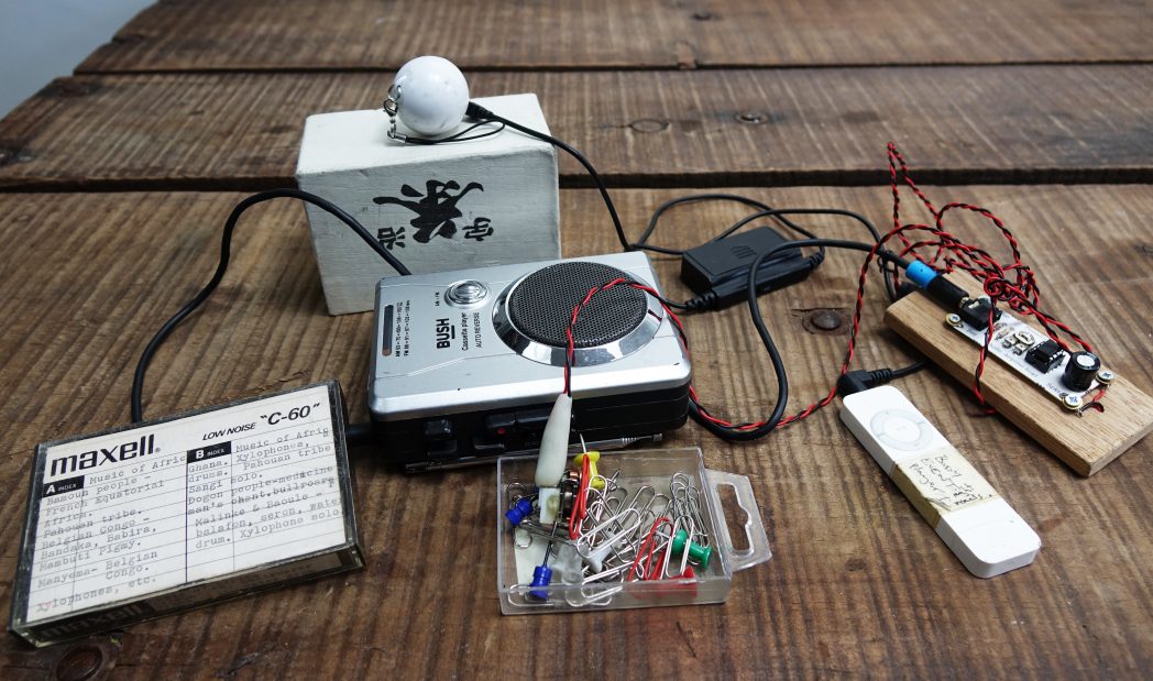 Live set-up varies wildly according to who I’m working with, what the situation is, how far I’m travelling and by what forms of transport. It’s sort of practical and impractical at the same time – impractical in the sense that I seem to be carrying a case full of junk. My ideal would be to work with nothing but paper but that’s never going to happen! I’ve been experimenting with low-tech resonators. A cardboard box is great for that because it weighs nothing and you can also put things inside it, so it’s serving a double function in terms of your packing. That idea of economy is very important to everything I do. When people hear paper clips or a piece of paper amplifying voices they can’t believe it – there’s a kind of uncanny magic to it, because the material itself is very humble, very simple.