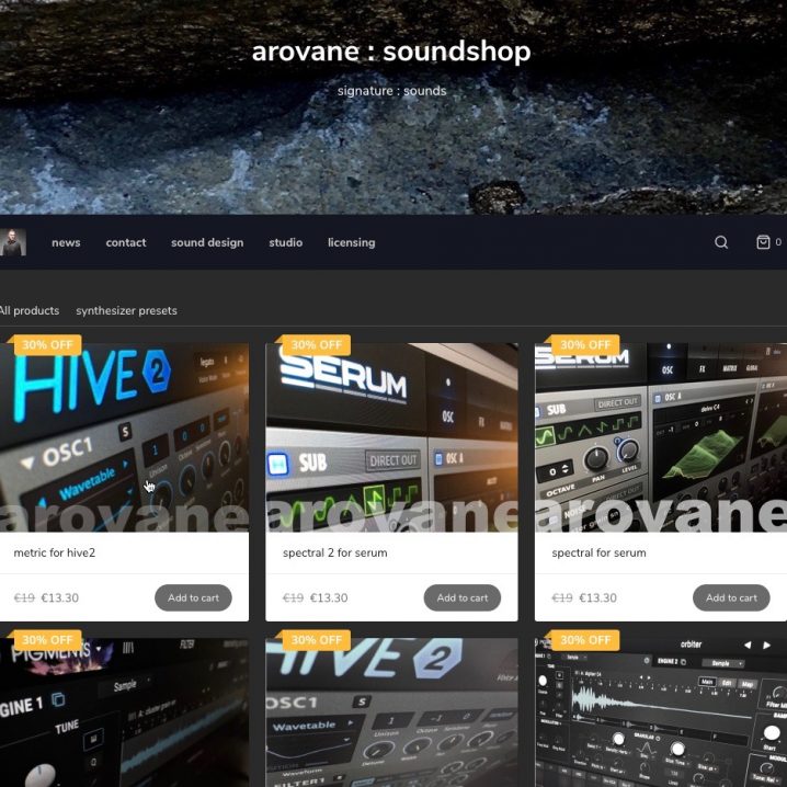 Well, and I launched my own arovane-soundshop.com this year, with a steadily growing range of presets for different software synthesizers. I am planning to release sample packs and presets for effects in the future.