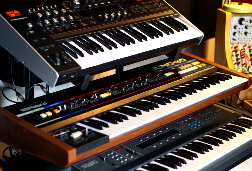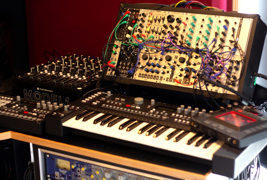 I think in terms of radically different setups, I’m on 8 right now, although it develops and morphs all the time. At the moment, I have a studio in my home on Salt Spring Island in Canada, and it has 3 slightly different zones. I’m always trying to find the balance between options and limitations, and at the moment for me, the best solution is to have a few different little stations that are independent of one another, but kind of self-sufficient to make a track on. So one station at the moment has an Elektron Analog 4 and RYTM, a small Eurorack setup, and a DJ mixer. The next station is more traditional synth-based with a Juno 60, Hydrasynth, Ensoniq SQ80, and another small Eurorack, all going into an Ableton template that has some loopers and sends setup, and being controlled by a custom midi controller from Yaeltex. The third one is a Mac running Logic, which can record the first two setups, and hosts some soft synths and sound design tools.
