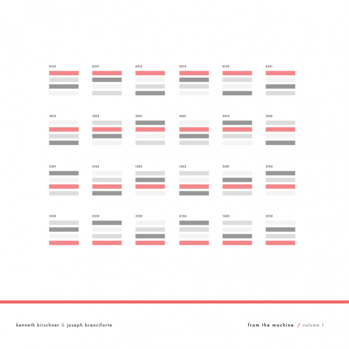 I always sit down to listen to music the way others sit down to watch a good film. I need preparation, appropriate headspace, continuous time. In the case of the collaboration between Kenneth Kirschner and Joseph Branciforte, I knew that I needed to carve out a special, active listening session. Brooklyn-based Kirschner has been experimenting with avant-garde classical composition since the early 2000s, most notably (for me) alongside Taylor Deupree, as the duo released a few “post piano” albums on Sub Rosa, Room40, and of course, 12k. In 2015 I met Kenneth Kirschner in person and ended up contributing towards the liner notes of his Compressions & Rarefactions release for 12k. Branciforte is a sound engineer, working in his own Bushwick post-production studio, out of which he also runs a same-named label, Greyfade. The latter is focused on “process-based” works and is the home for this, only second, collaborative release. As the subtitle of this latest collaboration states, this is only the first volume of the “application of software-based compositional techniques — including algorithmic processes, generative systems, and indeterminacy — to the creation of new music for acoustic instruments.” As a result, From The Machine, sounds as if numerous complex functions within a modular synthesizer have been extended to players of Flux Quartet and International Contemporary Ensemble. One of the pieces originated as a purely electronic composition, cut-up, time-stretched, and looped, and then [years later] transcribed by Branciforte into a musical score, which was painstakingly executed by a pianist and two cellists to recreate the original metric structure, harmonies, and sonic complexities. The other piece was programmed in Max/MSP, using a procedural exploration of a single four-note chromatic cluster, slowly ascending multiple octaves, to create harmonically rich tonalities, unique in each permutation of this algorithmic work. The album’s cover artwork hints at the pseudo-code used as the original notation for overlay of the four notes in the space of fluid rhythms and intricate timbres. This is a composite study from numbers to sound, one which is rewarding for those exploring music in an academic, as well as simply non-classical ways.