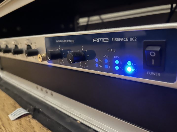 My set-up has always been pretty simple – I create and mix mainly in the box using a Macbook Pro bringing in hardware inputs or recording acoustic instrument parts or sounds where I need to. I also work in spatial sound presenting live shows in a multi-speaker format working with partner L-Acoustics. There was a point when I would have to work in the L-Acoustics studio with 360 speakers around me to hear how tracks might sound live but last year they released L-ISA studio which enables me to hear a render of the spatial sound as a binaural headphone output so I can be pretty self-contained in my studio set-up.