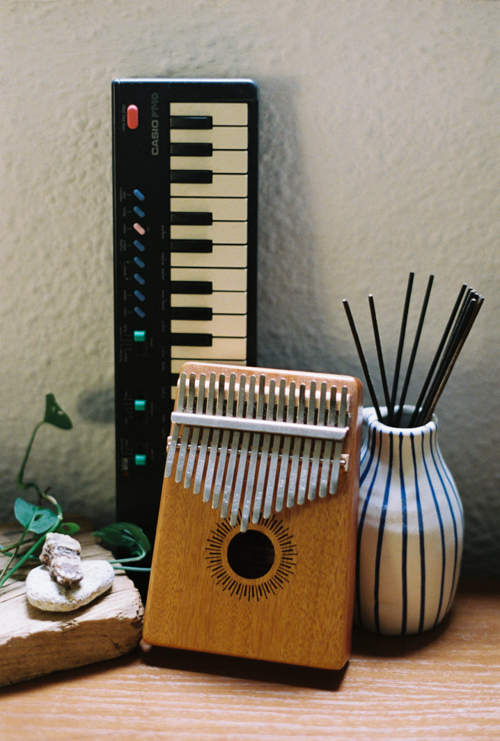 My creative environment is always morphing and developing because my studio is inside my bedroom, surrounded by my plants, books, bed, and a bunch of other belongings, so I often tend to prioritise my comfort and feeling inspired by my surroundings rather than having a place that is incredibly practical and professional, plus there are certain limitations I have to deal with such as electronic connections and furniture that isn’t mine, but that is stored here. There have been a couple of big changes, though. When I first moved from Peru to Spain, I had a quite simple audio interface, a pair of KRK Rokit RP5 monitors, a Zoom H4n Pro recorder, the Korg Minilogue, a Korg MS-20 Mini, and my old Lenovo laptop. During the next couple of years, my laptop died, the audio interface didn’t have enough ins and outs anymore for the new synths I bought, and my interest in hardware effects was born. So, nowadays, I have an M1 iMac, an RME Fireface UCX audio interface, a pair of Focal Alpha 65 EVO monitors, and my desk is comprised of a Sequential Prophet 6, a Mellotron M4000D Mini, a Moog Subsequent37, a Roland RE-201 Space Echo, an Elka Rhythm Machine, and four pedals: Hologram Microcosm, Strymon Nightsky, Chase Bliss Audio Blooper, and Empress Effects Echosystem. However, the instrument I use the most is on the other side of the room, and it is my upright piano, which I record with a pair of Oktava MK-012 microphones.
