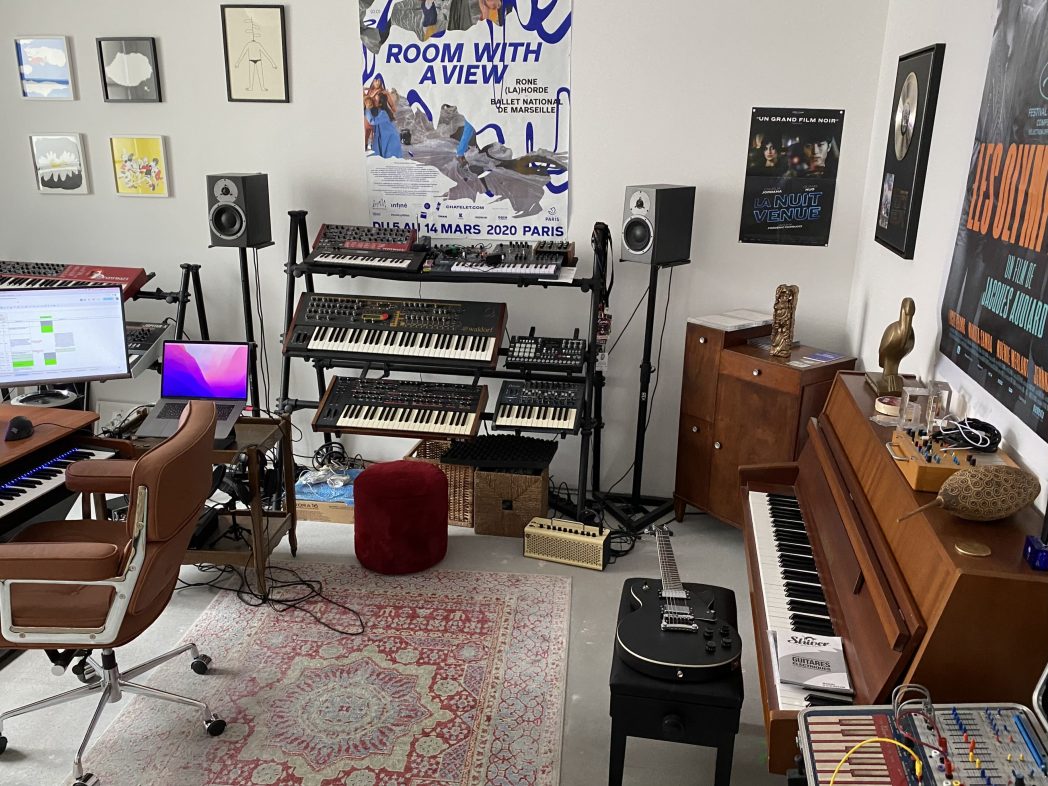 I believe I’ve had as many studios as relocations. For a long time, I was based in rather dark places, without natural light, where one loses track of time, like my studio in Berlin, which was located in a basement. I also remember an old garage in the Parisian suburbs… Now, I’m settled in Brittany, where my studio is much brighter and more inspiring. I’ve noticed that I’m quite sensitive to the environment of the room. Throughout all these years, I’ve collected quite a few synthesizers and machines, but in my studio, you’ll also find a piano, a guitar… I’ve worked in large studios with huge mixing consoles before, but in the end, it doesn’t really suit me. I prefer a simpler and lighter setup.