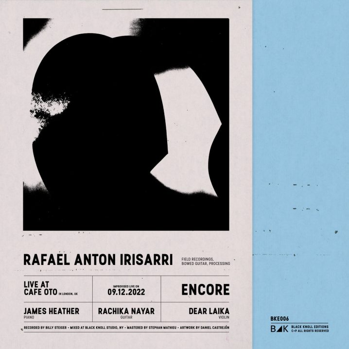 Albeit just a single, nearly 14-minute track [something I very rarely cover on Headphone Commute due to a huge backlog of full-length albums I want to share with you!], Encore (Live at Cafe OTO) is a beautifully recorded live performance, or I may even go as far as calling it a “conversation”, between four fantastic musicians and the audience, which took place in London’s Cafe OTO during Rafael Anton Irisarri and Rachika Nayar‘s European tour dates in 2022. The duo was joined by James Heather and Dear Laika “to create an enchanting tapestry of sounds, melodies and textures, wrapping listeners in their sonic alchemy.” The slow-evolving guitar-driven ambient pads, the field recordings, and the sparkling sprinkling piano keys create a gorgeous atmosphere, perfect for nearly every occasion, especially if you’re a fan of all the words on this site. It reminds me a lot of one of my favourite pieces by Irisarri, back in 2010, when he got together with Kelly Wyse to record their take on Arvo Pärt‘s “Für Alina” – you can find that track on a 3-track EP titled Reverie (Immune, 2010), or, retitled as “Seattle” on a collection of Live performances from 2010. “The result is a truly immersive experience that invites listeners to close their eyes and embark on a serene and introspective journey as they surrender to the uncharted harmonies embodied in this release.” You can grab this piece directly from Irisarri’s Bandcamp as a digital track at “Name Your Price”. Mastered by Stephan Mathieu.
