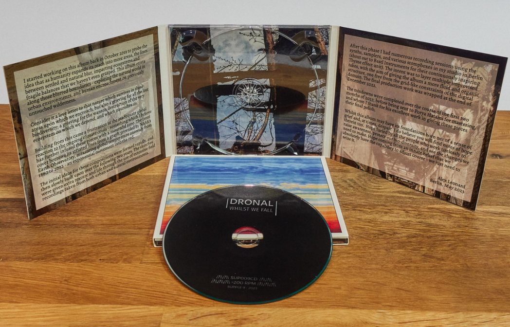 Investigating “the blurred boundaries between the natural world and the one which we have created on top of it” with his Dronal moniker, Alex Leonard has been on my rotations in the past. If this particular project is new to you, let me point you to his Ebauche, with the 2018 release called Mutable and the 2019 release named Formic Syntax. Both albums have appeared on Leonard’s own Supple 9 imprint, which this Irish electronic musician is running out of his Berlin home. [A sudden thought occurred to me just now – most labels I cover on Headphone Commute are run out of people’s homes, right? I mean, it’s not a rented office or a factory. There’s something special about that, don’t you think?] Most recently, that imprint has expanded to invite other artists into its catalogue – I’ll share a few words on Erik Levander‘s Kvad really soon. In 2019, Leonard put out Internal Motion as Dronal. And this is how we arrive at the subject of this review, Whilst We Fall, on which, incidentally, he has been working for the last three years.