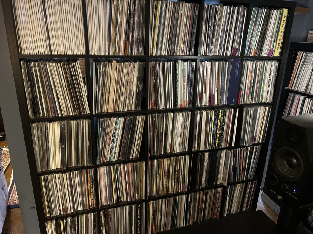 I got the motivation to change my organization when you asked me to do this interview about a year ago. It used to be all over the place, more in eras of my life than by genre. Only made sense to me, I knew where most stuff was. It was getting out of hand, though, and needed to be completely reorganized. It took months, with multiple re-dos. Now, it is alphabetical, mostly by broad genres, either by artist or label. I have a blocks/shelves of: