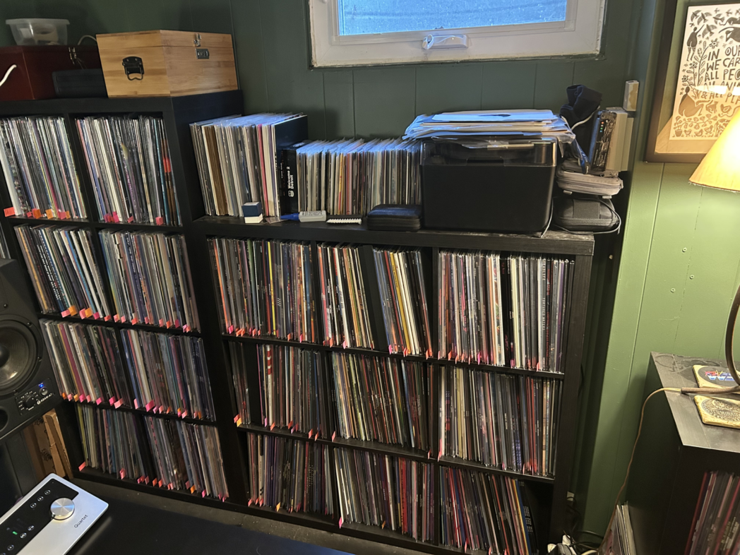 Riding my bike to my show on the other side of town with 2 hours of vinyl on my back is a delight. Even more fun is lugging turntables and a mixer to live events. I have to be in the right mood to put records away, so I end up having piles leaning against my different record shelves that need to be stocked. The piles have gotten out of control a few times.