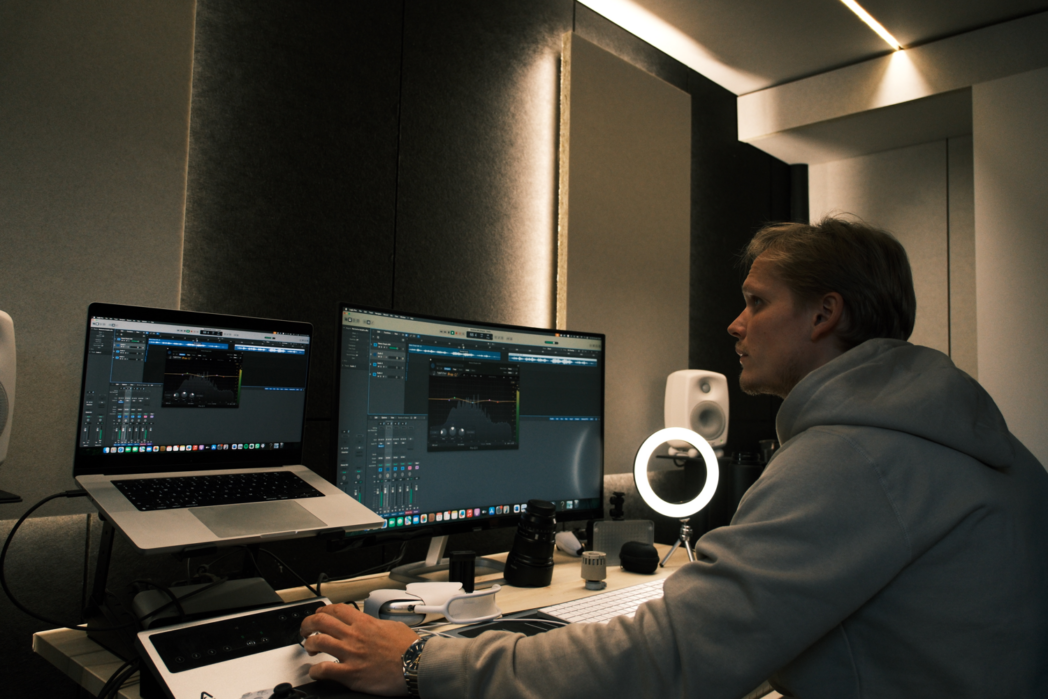 I try to keep it simple. I have my Logic running and sometimes few preset plugins on but usually just raw sound. I love to play with analogue-like eq plugs such as Pultec’s passive EQ’s.