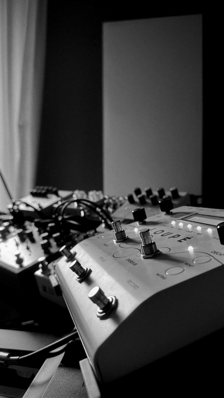 I don’t really play live, but I do always take a setup with me when travelling: OP-1f, OP-XY, a pedal, like the Chase Biss Mood or AC Noises Ricorda and the TX-6. If I have room, I‘ll also take my mobile Aiaiai monitors.