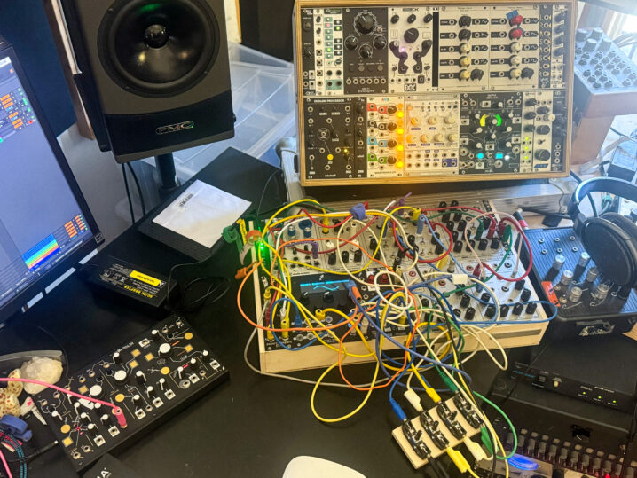I am very interested in flow. For me, it’s really important that a piece carries you from start to end, with new details coming in throughout. A lot of the time, I start from an improvised recording. It could be when I find a sound I really like on a synthesiser, a loop that feels engaging, something on the modular synth that suddenly becomes interesting, or a chord progression I connect with and need to record right away. I record it and then try to understand whether a specific section is all that’s needed, or if a longer one works better. From there, I usually add something on top, trying to fill the gaps. It could be a new melody that enriches the first one I recorded, or sounds that give the composition more depth. I spend a lot of time mixing the sounds. In fact, mixing is part of the composition process for me. I don’t really have a separate mixing session at the end; I just keep building, changing, and removing until it feels right, and I find that depth and flow I’m looking for. So recording a good take, something that speaks to me, is very important. Then I might shape the dynamics using effects like delay, reverb, distortion, filtering, and very importantly, automation to keep the sound moving.